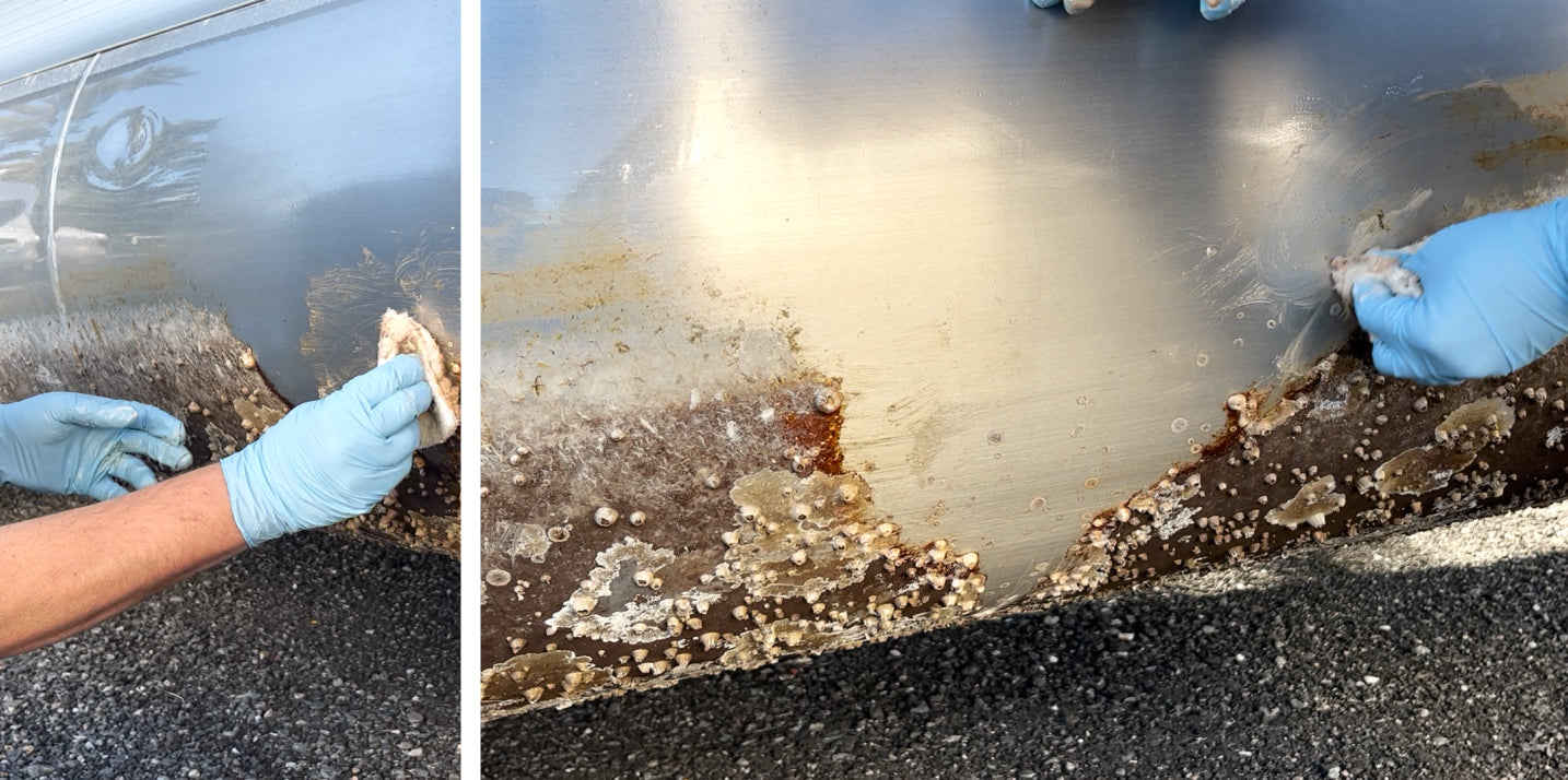 Left for a season, the Hull Pro-coated pontoons took on hard growth and needed some TLC. It took a lot of elbow grease, but the vessels were reset successfully and Hull Pro exhibited its benefits clearly.