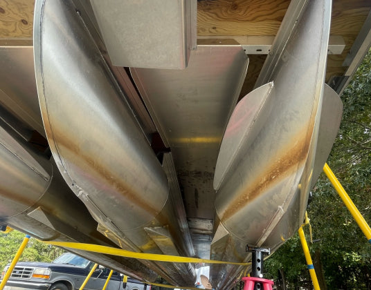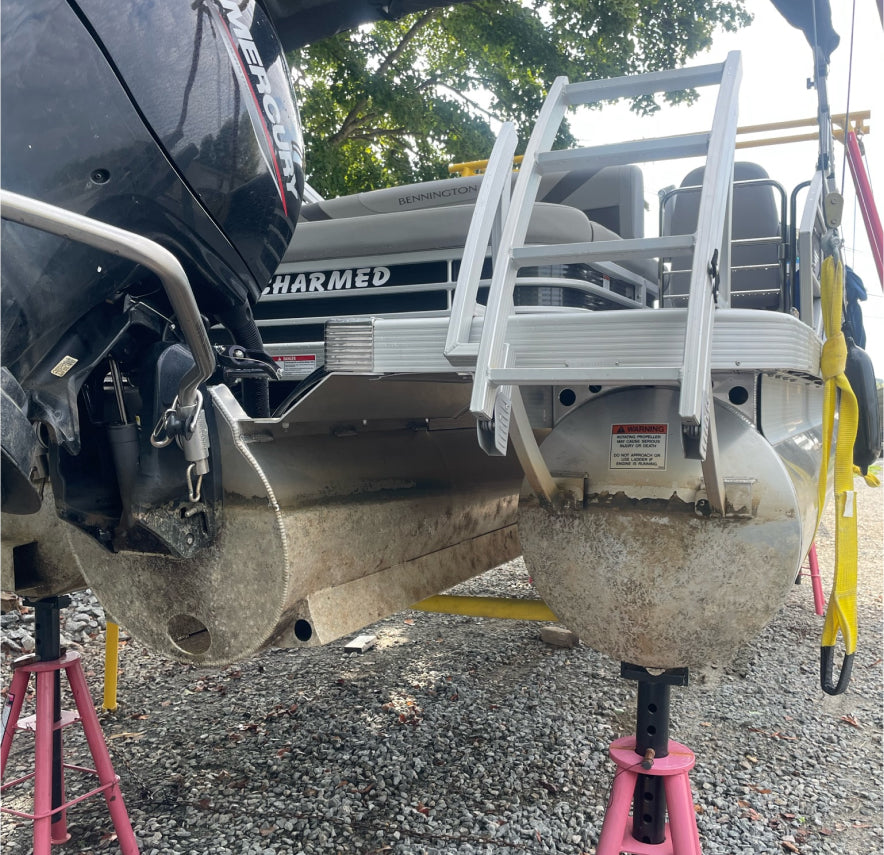 Coated in February 2023, the Bennington SX-22 was left in the water all season and pulled in September. 'Charmed' was brought ashore from Lake Wylie for an examination of its underwater growth and Hull Pro’s protective coating.